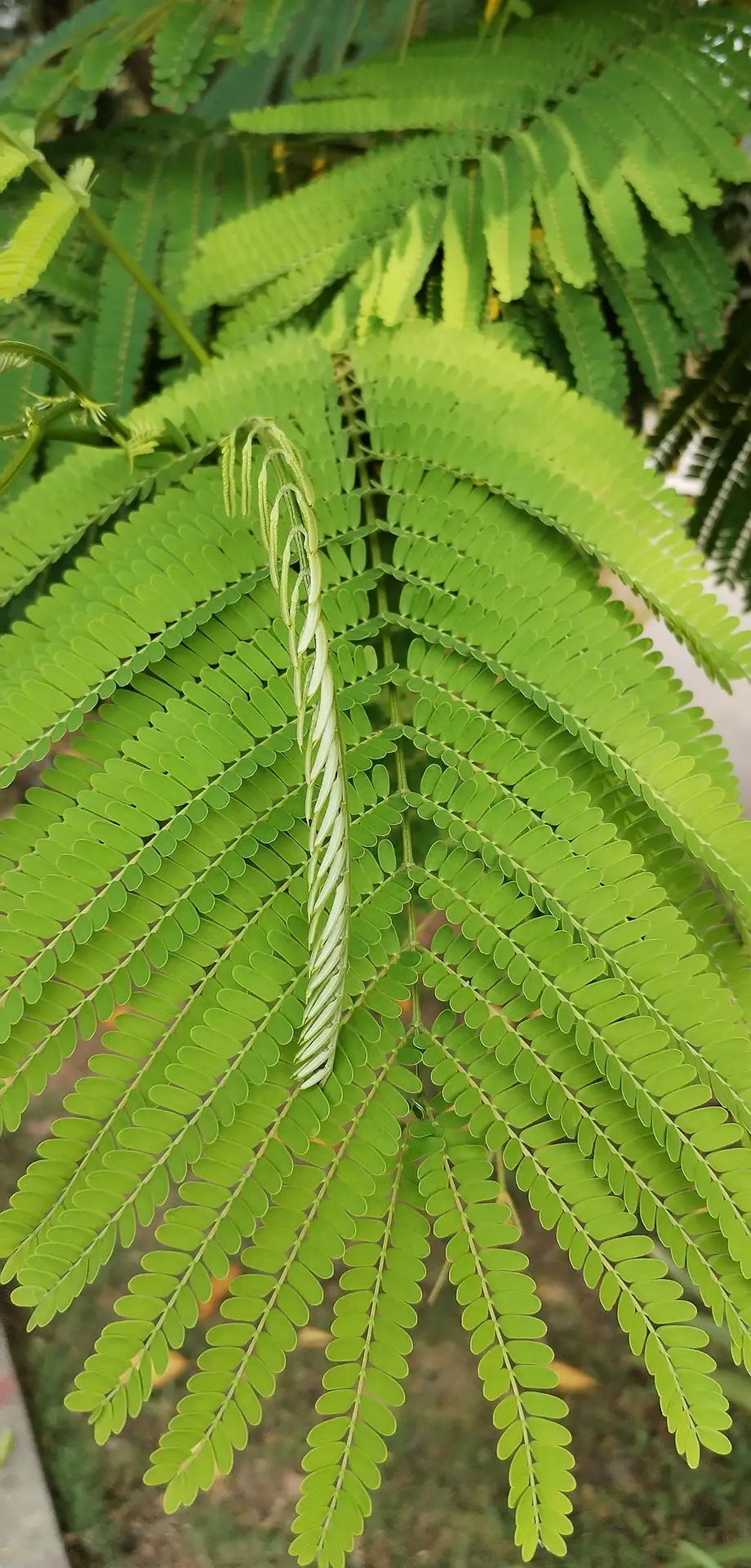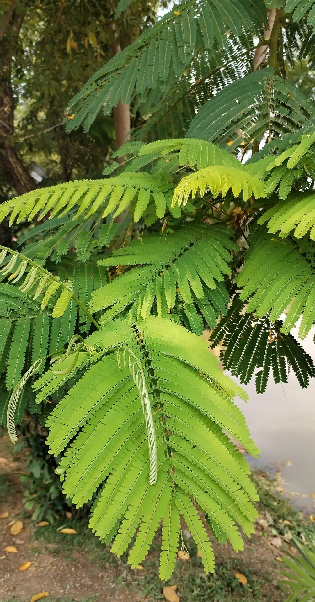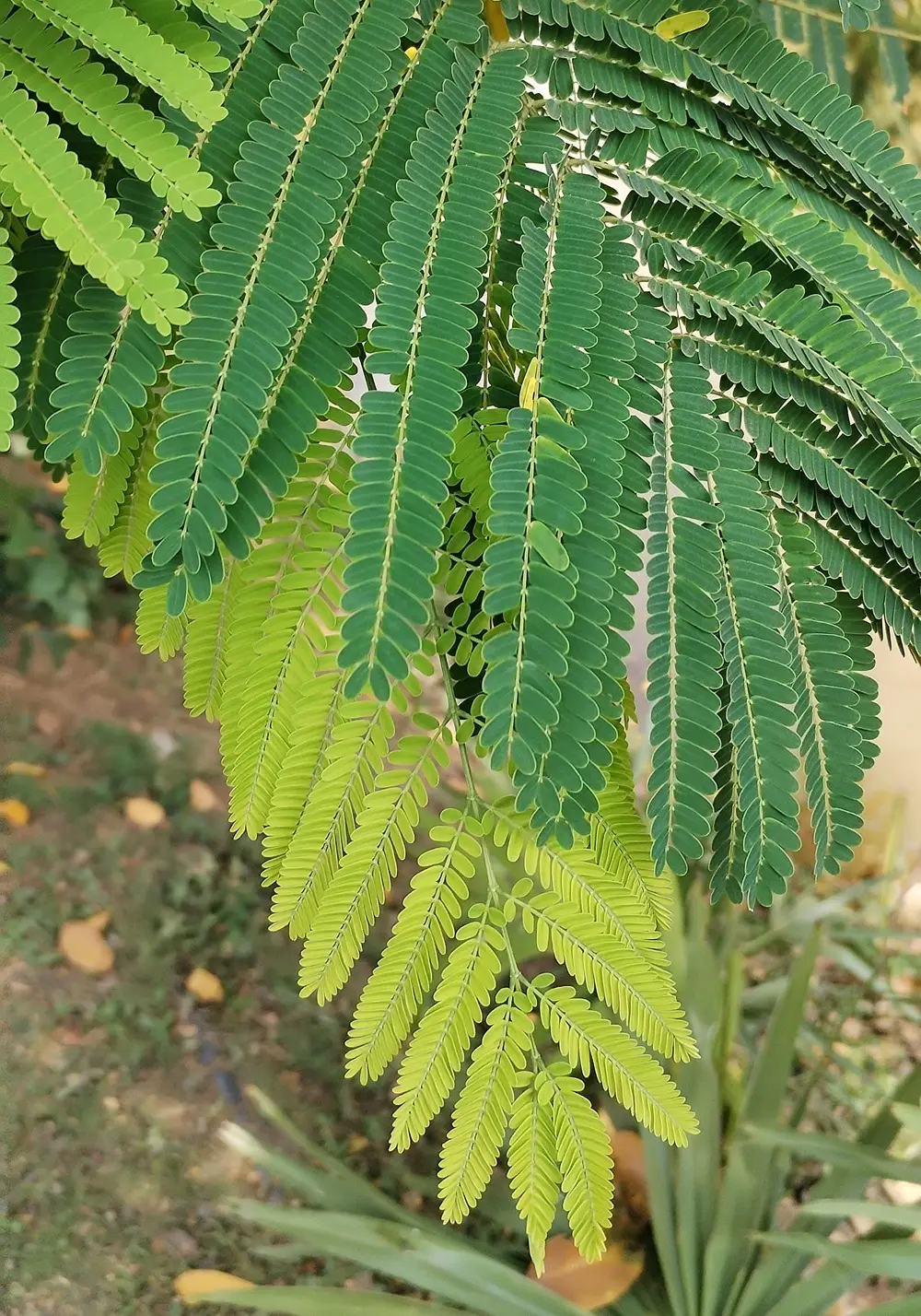 Composées et bipennées, elles mesurent 30 à 50 cm de long, regroupant de nombreuses petites folioles vert clair, conférant un aspect aérien au feuillage.